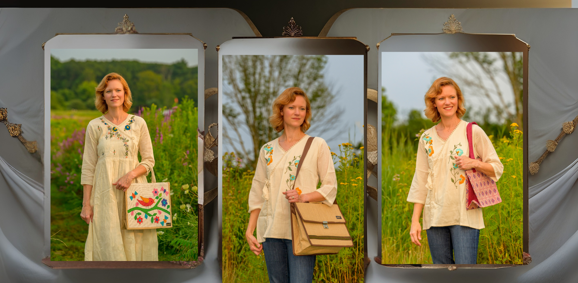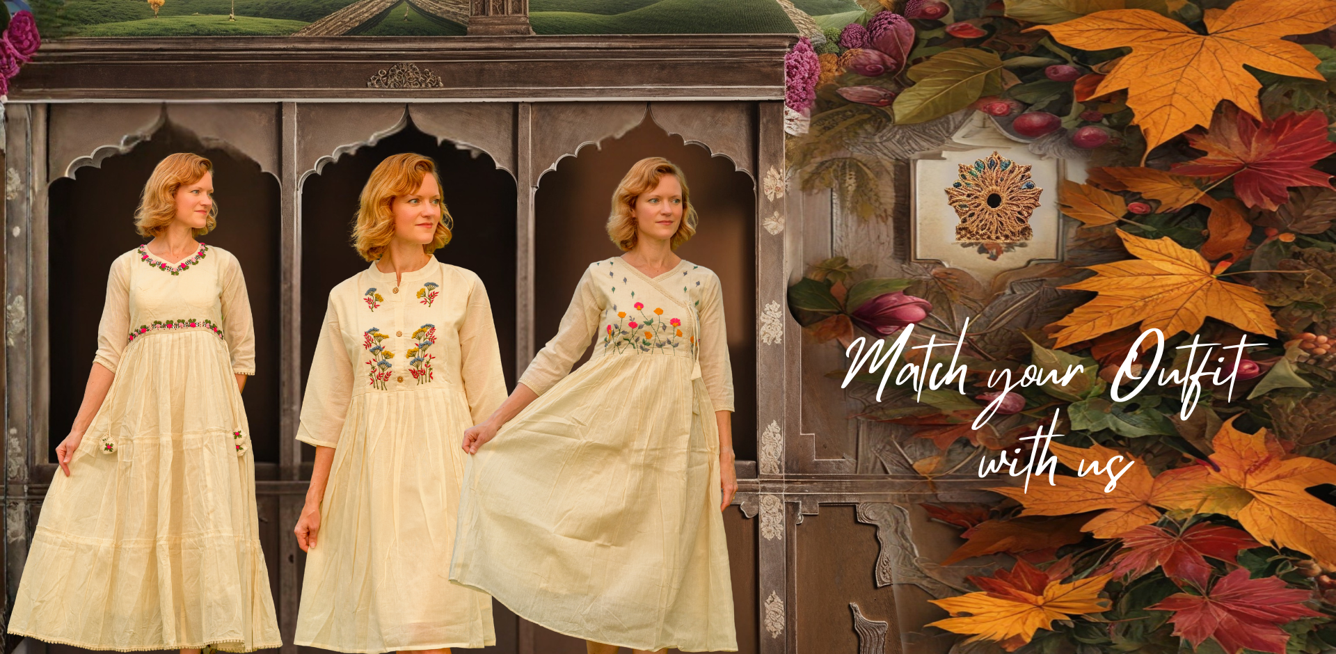 You can find a variety of items, including sarees, kurtas, shirts, dresses, scarves, and even home textiles like curtains and bedding.